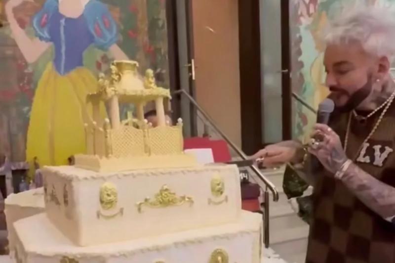 На столах именинника красовались цветочные композиции из тюльпанов, розочек и каллы. Угощали гостей рыбными и мясными нарезками, салатами, да красной икрой. Ярким моментом стало зажигание свечей на первом торте. На десерте стояла фигура певца с такими же горящими элементами в рукавах, что и на концерте в Санкт-Петербурге. Напомним, что на этом выступлении он сильно обжег руки о пламенные факелы.