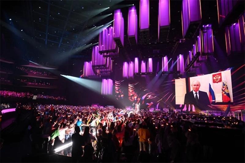 20:35. На большом экране запустили поздравление Владимира Путина. Он пожелал всем конкурсантам успешных выступлений, а зрителям — ярких эмоций от встречи с настоящим творчеством.