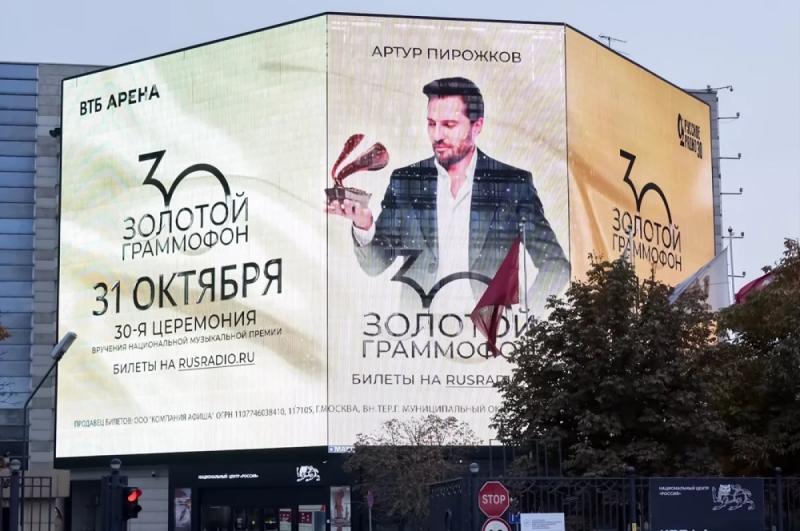 Рекламная кампания церемонии награждения победителей музыкальной премии и юбилейного шоу «Золотой Граммофон», посвященного 30-летию мероприятия и крупной радиостанции, демонстрирует новый подход к созданию креативов. Организаторы отказались от традиционной фотосъемки и сгенерировали образы звезд для макетов наружной рекламы в нейросети. Такое решение позволило реализовать яркую и нестандартную концепцию, объединившую облик звезд сегодня и 30 лет назад. Церемония вручения премии состоится 30 и 31 октября в «ВТБ Арене».